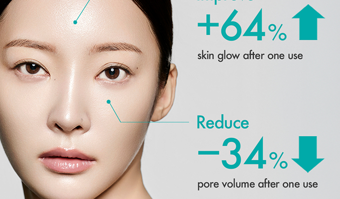 - Pores refine immediately: pore area −30.97% and volume −34.33% after a single application.
