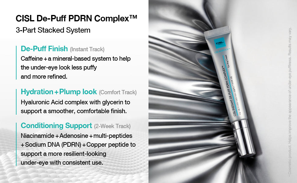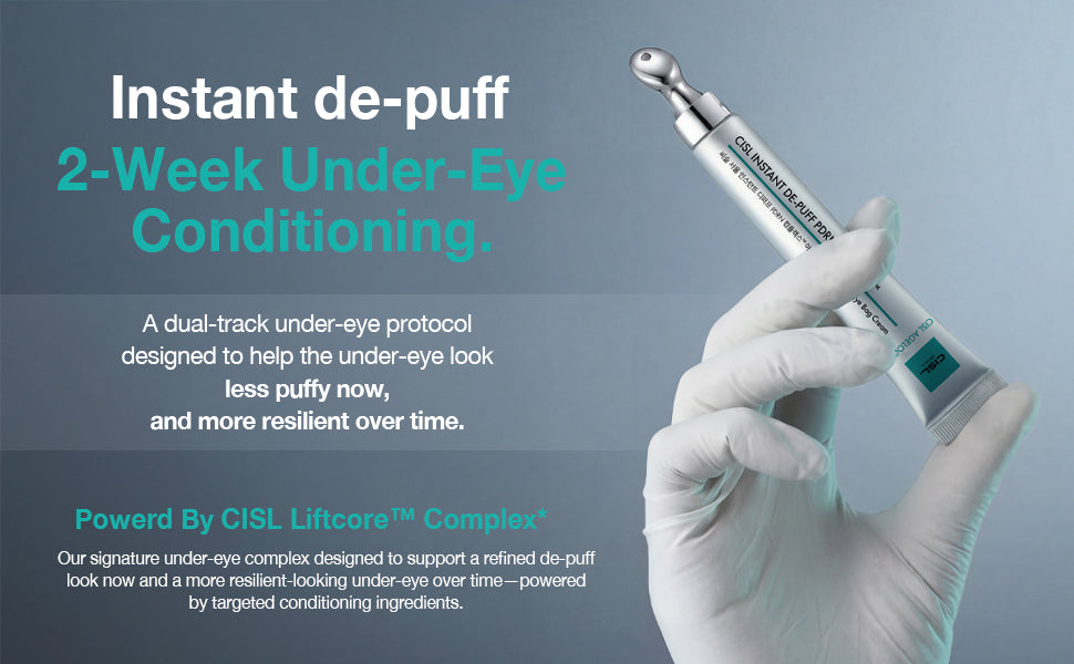 [Chamber Science]Powered by CISL Liftcore™ TechnologyInstantly plumps & reduces under-eye puffiness. CISL Liftcore™ utilizes a high-performance hydrogel delivery system to infuse the eye area with active Caffeine and PDRN. This targeted technology works to instantly refresh the appearance of tired eyes while supporting long-term firmness and structural elasticity.